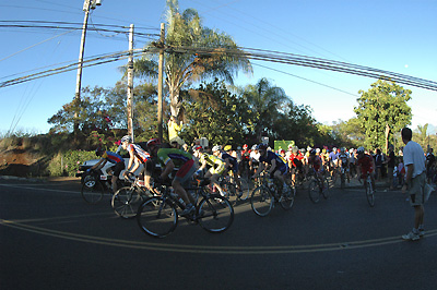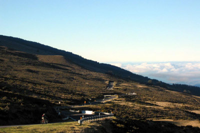 レース当日は雲ひとつない晴天。これからクライムアップするハレアカラの山容がスタート地点のパイアからすべて見渡せる。傾斜がなだらかなため威圧感はなく丘のように見えるが、山頂の標高は3000m。ハレアカラを見ているだけで緊張が高まる。