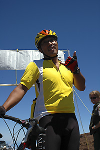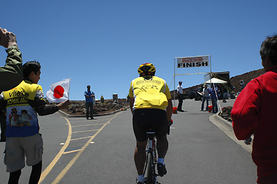 氏名■河村健一(Haleakala Bike Company team) 年齢■33 居住地■静岡県下田市 感想■今年が2回目の参加で、今回初めて日本人チームを結成しました。マウイ島在住の飯田夫妻はロードバイクに乗るのは初めてだったけど、マウイローカルだけあってパワーがありました。完走できてうれしいです。 トレーニング■週に3-4日、MTB、ロードバイクで3時間ほどライディング。あとはヨガとサーフィンで集中力と肺活量をアップするようトレーニングしています。 使用バイク■GIANT TCRcomposite3 ギア■フロント48×34/リア12〜26 日本のライダーへ■チーム参加は面白いですよ。1人1000mアップづつなので手軽に参加できると思います。来年はぜひ女性チームをサポートしたいです。