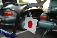 部屋に戻って明日の支度(したく)を始める。ライトやサドルバッグなど、不要な保安部品をはずし、フレームにゼッケン#444を貼る。日本から持ち込んだ日の丸のシールをサドルの下にぶら下げ、ジャージの背中にも貼った。そして、ジャージのポケットには日の丸の旗をしのばせた。