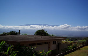 ひとしきり散策して下る。道すがら、ワイルク(Wailuku)近くの高台にある見晴らしのよい住宅地で、威容(いよう)を誇るハレアカラを望んだ。富士山のように頭を雲の上に出していたが、とんでもなく大きい「頭」だった。