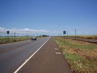 T中さんとK村さんに1600には戻ると約束してホテルを出た。北東の貿易風に乗り、快調にモクレレ・ハイウェイ(Mokulele Highway)を南下する。スピードは35km/h程、時には40km/hを越えた。両脇はサトウキビ畑、前方は驚くほど真っ直ぐな幅広い道路が少なくとも5kmは続いている。アプローチする飛行機から見下ろしたあの道だ。左手のハレアカラは相変わらずだが、右手の西マウイ山地(West