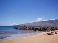 やがて道は片側1車線となり、防風林に囲まれる。マアラエア湾(Maalaea Bay)に行き当たると、南キヘイ街道(South Kihei Road)に入る。地元民が多く遊ぶ砂浜に沿って南下する気持ちよい道だ。西マウイの稜線(りょうせん)はついに海に没し、その先にはカホオラウェ(Kahoolawe)島が現れる。CG(コンピュータグラフィックス)で描いたような風光に恵まれた地は、そのままお伽(とぎ)話(ばなし)の舞台のようでもある。