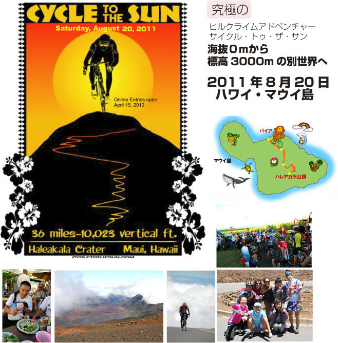 ツアー詳細&お申し込み↑ サイクルトゥザサン2011 参加ツアー料金3泊5日238,000円 (東京発・2名1室・燃油サーチャージ32,000円(目安)は含まれていません・JAL利用8月18日出発5日間) ツアーパンフレット2011 ( PDF230KB)