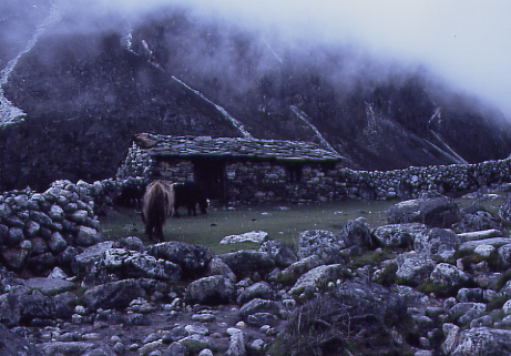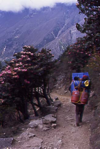 ディンボチェ→ロブチェ(4930m)この日はかなりきつい上りだ。とうとう氷河の中へ。 |