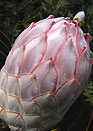 | マカワオを過ぎて牧場が広がるオリンダへ。途中、ハレアカラ・ダウンヒルとすれ違いました。上りを楽しむ人もいれば、下りを楽しむ人もいるハレアカラ・ハイウェイ。一緒に走ってくれたテレサは、クラの町で帰宅。残り2000mはケンさん一人です。クラではプロテア(右)がたくさん栽培されています。クラを過ぎると眺めのいい九十九折り。見上げれば、遥か遠くに頂上が…。 | ![]() |