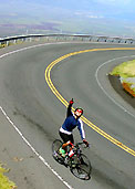 | ■ハレアカラヒルクライム3000mアップ 開催日:2007年8月11日(土)、その他8月2日〜8月23日まで毎日開催可能です。 参加費用:16,000円(ランチ・保険込みです) レンタルバイク:$60 http://www.gocyclingmaui.com/rentals.html 集合:8:00マウイ島ボールドウィンビーチパーク(Baldwin Beach Park) ※ピックアップサービスご相談ください。 解散:16:00マウイ島 ボールドウィンビーチパーク(Baldwin Beach Park) コース:パイア-マカワオ-クラ-ハレアカラ国立公園−山頂56km ランチ:軽食をご用意しています。(ライディング中の行動食はご用意ください) 持ち物:水・行動食・ウィンドブレーカーなど防寒具(海抜0m地点より約18℃気温が下がります) 準備:当日まで元気にお過ごしください。 中止の場合:悪天候が予想される場合、前日の夕方5時の天気予報によってツアーの 開催を決定します。中止の場合はメールまたはTELにてご連絡します。その場合、参 加料金は全額お返しします。 緊急連絡:info@alohabike.com |