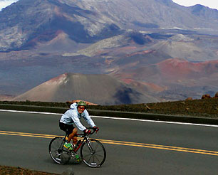 | 3055mのハレアカラはマウイのシンボル。なだらかでどどーんと大きく、パワーを感じる休火山です。海抜0メートルのビーチから、雲の上の頂上まで、ワインディングのオンロード。全長56km、3000mアップの究極のヒルクライムにチャレンジできます。 | ||||||||||||||||||||||||||||