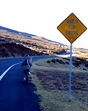 | ハレアカラ・ダウンヒルは、マウイ観光の中で一番メジャーなツアー。なのでロードライドとはちょっと違うけど、ここでご紹介しちゃいます。早朝バンでハレアカラに上り、日の出を見てからオンロードを自転車で下ります。いくつもツアー会社があるけれど、だいたいどこも120〜130ドルくらい。日の出後のツアーは割安です。ハレアカラ・バイクは他社より安め。 | |||||||||||||||||||||||||||||||