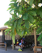 | めちゃスピード感あります。同じツアーに結婚式を数日後に控えたカップルがいたけれど、危険だと思ったらしく、途中でバンに迎えに来てもらってました。クラまで下りてくるとユーカリの林になって高原気分に。いくつか分かれ道があるので曲がり損ねないように。マカワオの四つ角では他社は真っ直ぐ下りるけど、ハレアカラ・バイクは右折です。これ間違えないように! ゆっくり下りてきてもお昼前にはたどり着きます。でもって、午後はビーチでリラックス! | |||||||||||||||||||||||||||||||