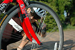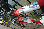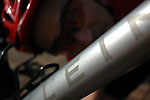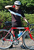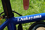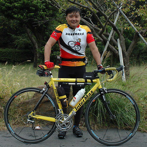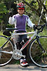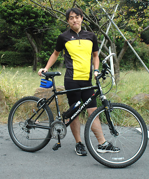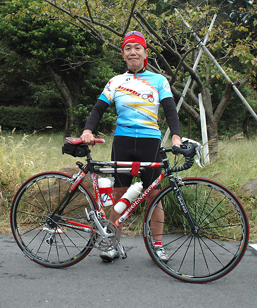 ライダー:ナカヤマさん アロハ:御殿場をフィールドにするナカヤマさんの周りはヒルクライムコースばかり。上っていない道はないようでいやでも練習になるそう。伊豆2DAYS が終わった後、自走で御殿場まで帰っていく姿はとてもCOOLでした。 バイク:CHERUBIM クロモリフレーム+カーボンホーク オススメ:カスタムオーダーのフレーム。自転車のりならいつかは作ってみたいあこがれのもの。ビルダーによって刻まれた名前が祖手もうれしいです。 インプレッション:細身のチューブを組み合わせたクロモリフレームは見るからにしなやかそう。いざペダルを踏んでみると心地よい推進力。路面のギャップもゆっくりと吸収してくれ、長距離ライドが楽しくなりそう。